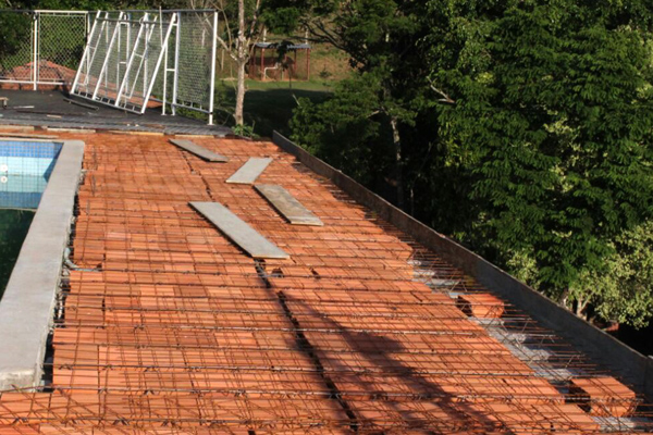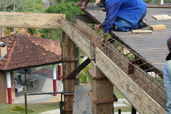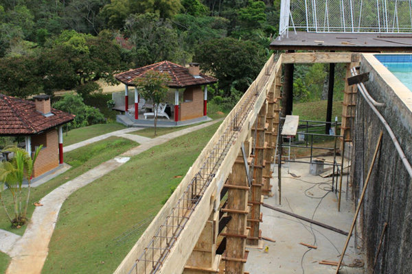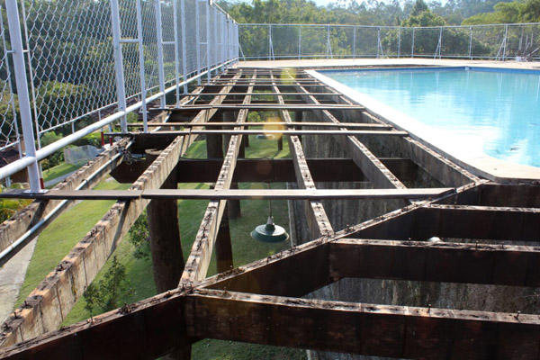 A direção do sindicato decidiu trocar o madeiramento por concreto, tanto nas vigas quando na borda da piscina.