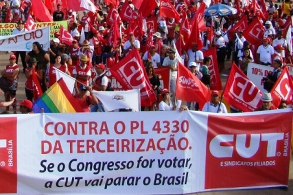 Em dia nacional de paralisação, CUT, CTB e as principais sindicais brasileiras se unirão a parceiros dos movimentos sociais como o MST (Movimento dos Trabalhadores Rurais Sem Terra), MTST (Movimento dos Trabalhadores Sem Teto) e Fora do Eixo-Mídia Ninja para cobrar a retirada do Projeto de Lei 4330.