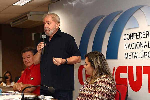 O ex-presidente Luiz Inácio Lula da Silva participou nessa terça-feira, dia 24, de um encontro da CNM/CUT (Confederação Nacional dos Metalúrgicos da CUT) para discutir os impactos das reformas trabalhista e da Previdência sobre os direitos e conquistas da classe trabalhadora.