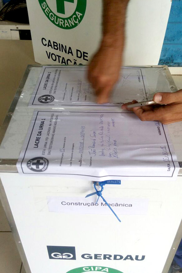 Nessa segunda-feira, dia 19, foi realizada a apuração da eleição da Cipa (Comissão Interna de Prevenção de Acidentes) da Gerdau no setor de Construção Mecânica.