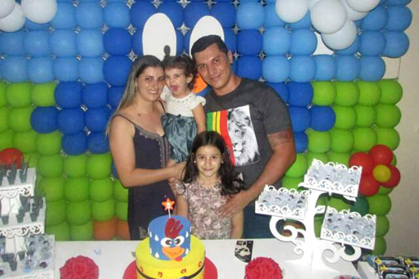 Heryton, com a esposa Geisa e as filhas, Letícia, de 9 anos, e Ana Clara, de 2, na festa de aniversário, em fevereiro (foto Arquivo da família)
