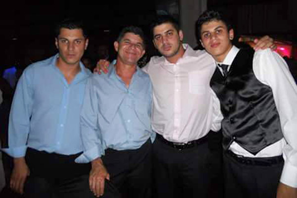 Herynton, com o pai, Boanésio Arruda, e os irmãos Jeverton e Brendon, em uma formatura do Brendon (foto Arquivo da família)