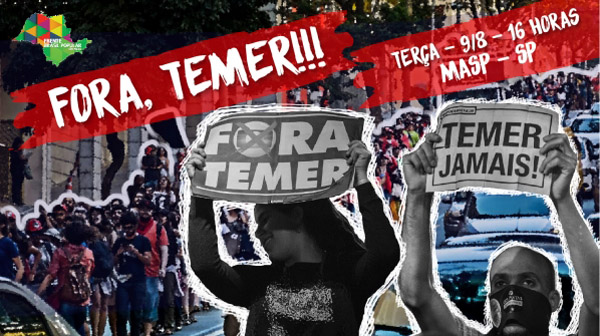 A Frente Brasil Popular convoca todos/as os lutadores/as sociais às ruas do Rio de Janeiro no próximo dia 5, e de todo o Brasil no dia 9 de agosto, para barrar o golpe, exigir a saída de Michel Temer e defender os direitos. Fora o golpista Michel Temer e seu governo ilegítimo e interino: este é o brado cada vez mais forte na sociedade brasileira.