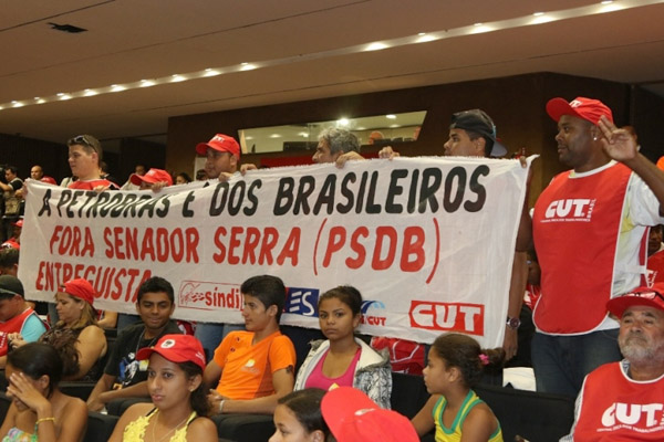 A mobilização convocada por uma Frente Parlamentar em Defesa Petrobras, que possui 240 parlamentares, contou com apoio de representantes da CUT e da FUP (Federação Única dos Petroleiros) para repudiar o Projeto de Lei do Senado (PLS 31/2015), do senador José Serra (PSDB-SP), que propõe a mudança no modelo de exploração do pré-sal.