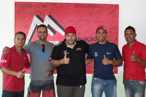 Marcinho, Edson Negão, Andrezão, Rodrigão e Ewerton Xixi, na sede do sindicato nessa quinta-feira, dia 16
