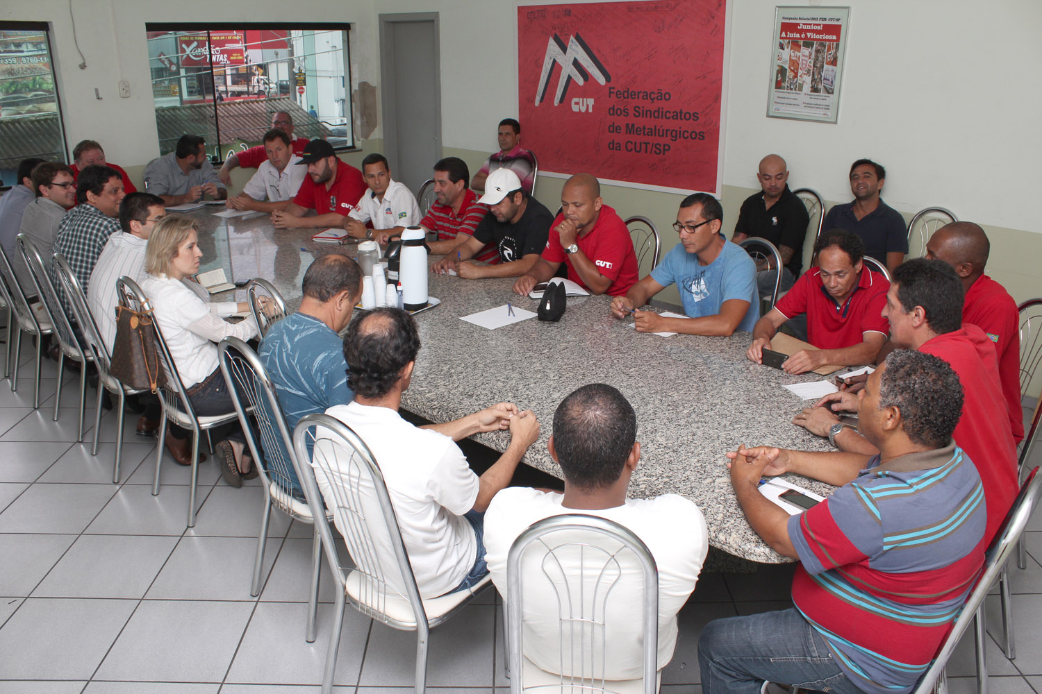 A reunião ocorreu na sede do sindicato e praticamente todo o comitê sindical da Gerdau esteve presente.