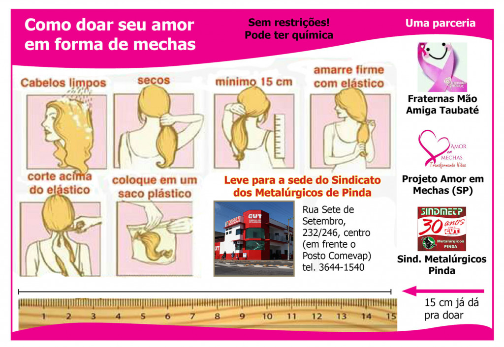 O Sindicato dos Metalúrgicos de Pindamonhangaba está recebendo doações de mechas de cabelo que formarão perucas para mulheres com câncer.