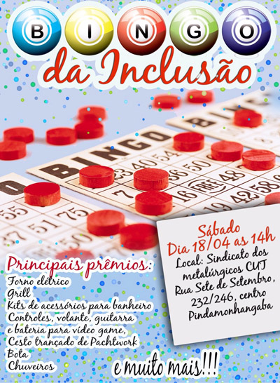 O Conselho Municipal da Pessoa com Deficiência irá realizar no próximo sábado, dia 18 de abril, às 14h, o Bingo de Inclusão, na sede do Sindicato dos Metalúrgicos de Pindamonhangaba-CUT.