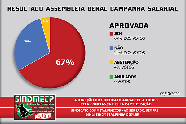 Os trabalhadores metalúrgicos de Pindamonhangaba aprovaram em assembleia geral a proposta da Campanha Salarial. A assembleia ocorreu de forma on-line nos dias 8 e 9 de outubro.