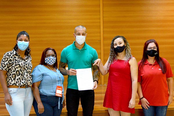 Herivelto Vela, assinando carta de compromisso da FEM-CUT/SP