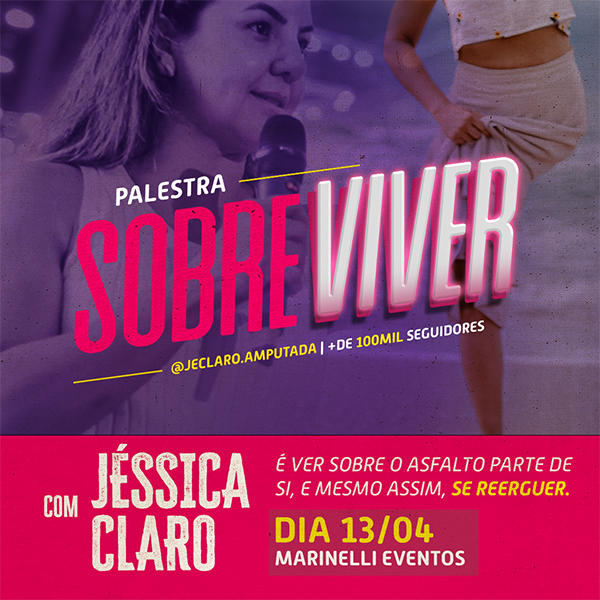 “Vai ser muito emocionante. Vai ter detalhes da minha recuperação que eu ainda não contei, depoimentos, também como eu consegui ser mãe. Uma palestra para todos que precisam de inspiração e orientação para superar obstáculos em suas vidas. Vai ser imperdível”, disse Jéssica.