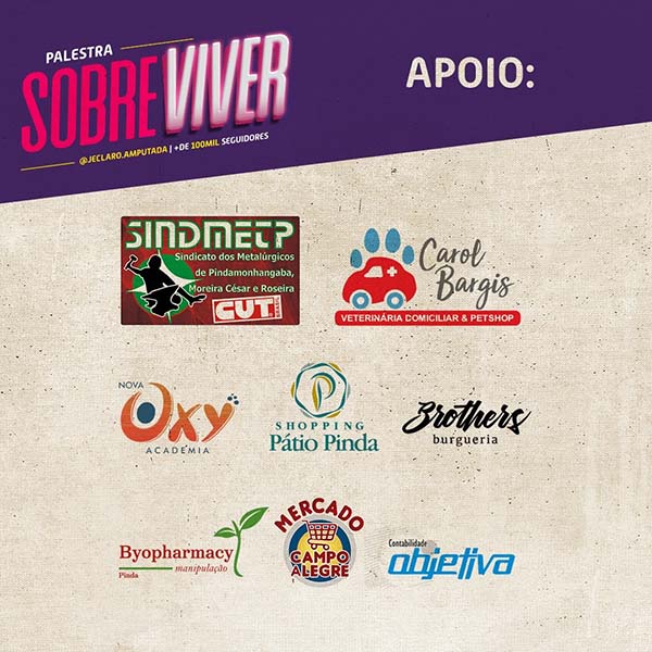 Também são apoiadores do evento a Nova Academia Oxy, Shopping Patio Pinda, Brothers Burgueria, Byopharmacy Manipulação Pinda, Mercado Campo Alegre, Objetiva Contabilidade.
