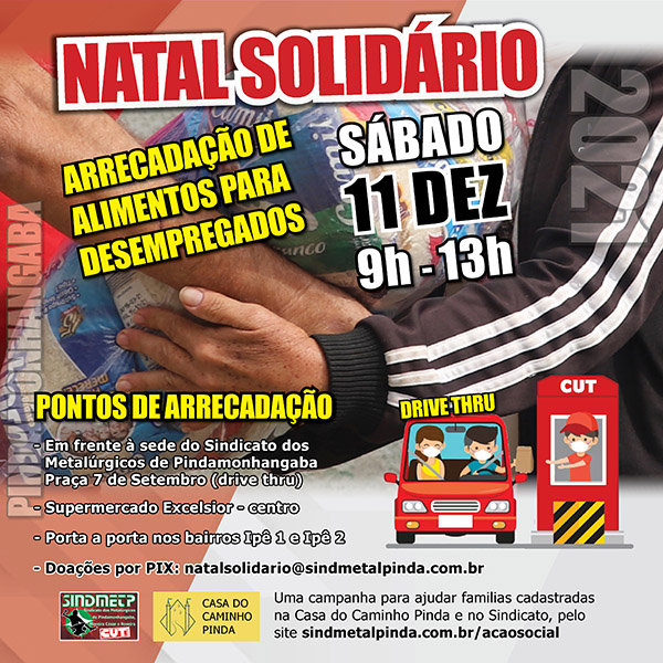 O Sindicato dos Metalúrgicos de Pindamonhangaba irá realizar mais uma edição da campanha Natal Solidário, que existe há mais de 10 anos fazendo arrecadação de alimentos.