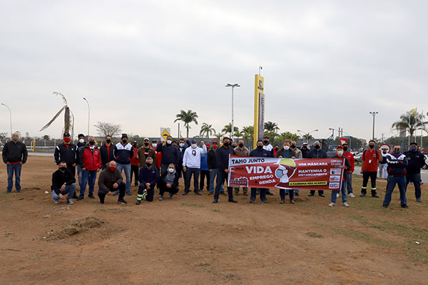 Sindicalistas no ato, que contou com apoio dos Metalúrgicos de Taubaté e dos Condutores do Vale do Paraíba