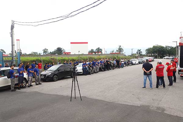 O protesto pela Campanha Salarial teve adesão total dos trabalhadores, que estiveram de braços cruzados para cobrar da empresa abertura de negociação com o Sindicato dos Metalúrgicos.