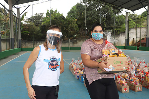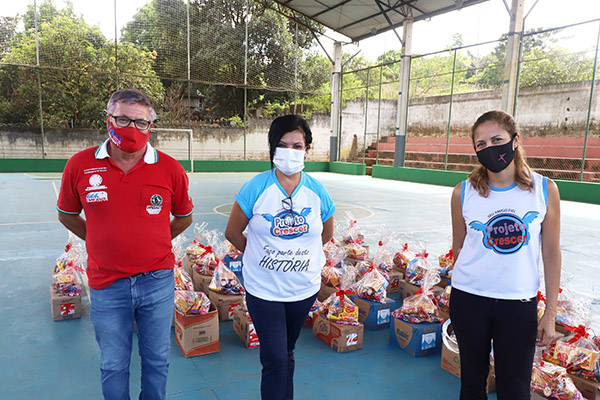 Projeto Crescer, junto com Sindicato e demais parceiros, entregou chocolate e alimentos, como caixa de leite; maioria das famílias é do bairro Goiabal