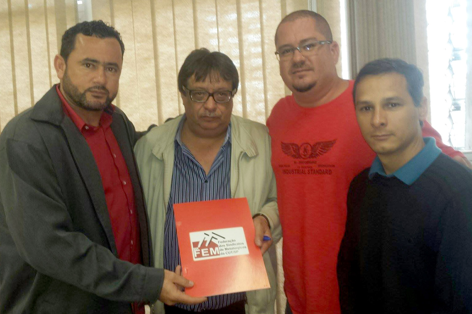 Dirigentes da FEM-CUT/SP e dos sindicatos metalúrgicos filiados entregaram na manhã de segunda-feira, dia 16, a pauta de reivindicações da Campanha Salarial da categoria para os representantes das seis bancadas patronais (abaixo relação), na sede do Sicetel, na FIESP.