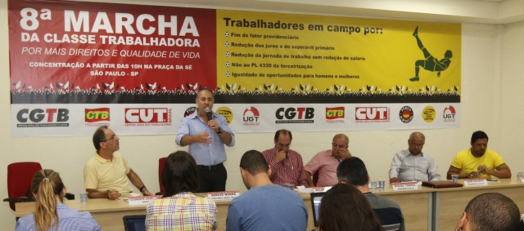 A CUT e as demais centrais sindicais estiveram reunidas nesta segunda-feira (7), em São Paulo, para falar sobre a 8ª Marcha da Classe Trabalhadora: por mais direito e qualidade de vida, que ocorrerá dia 9 de abril e pretende reunir mais de 50 mil pessoas na capital paulista (leia mais abaixo).