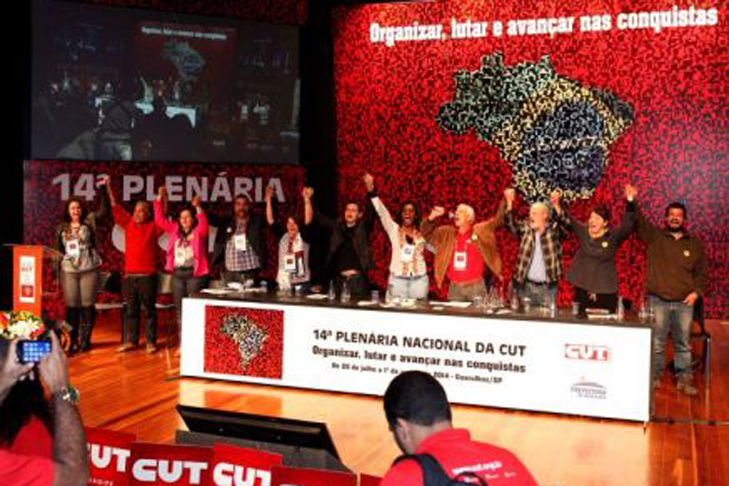 “O Estado que está aí não é o que queremos. Os poderes ainda estão nas mãos da burguesia, porque não mexemos nas estruturas e a presidenta Dilma Rousseff depende da capacidade que o movimento sindical tem de ir para a rua dar sustentabilidade à convocação do plebiscito. Aí teremos condição de fazer a luta ideológica com eles (referindo-se aos partidos e forças conservadoras) e discutir com a opinião pública quem está certo”, explicou aos mais de 600 delegados da plenária.