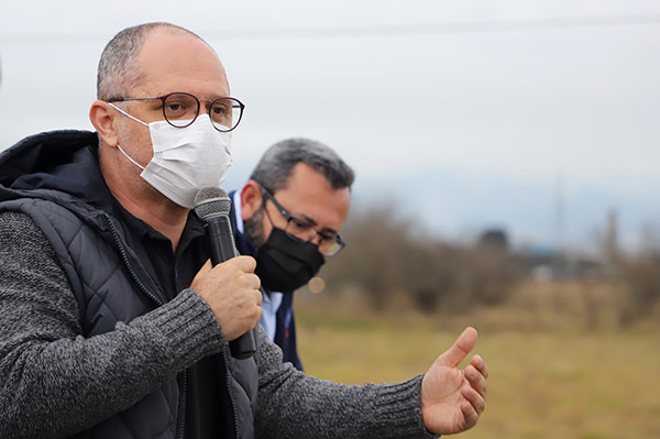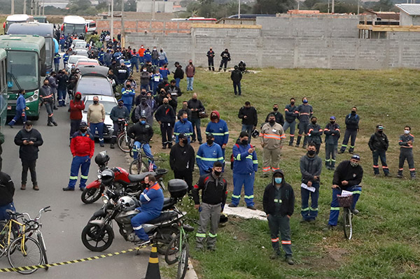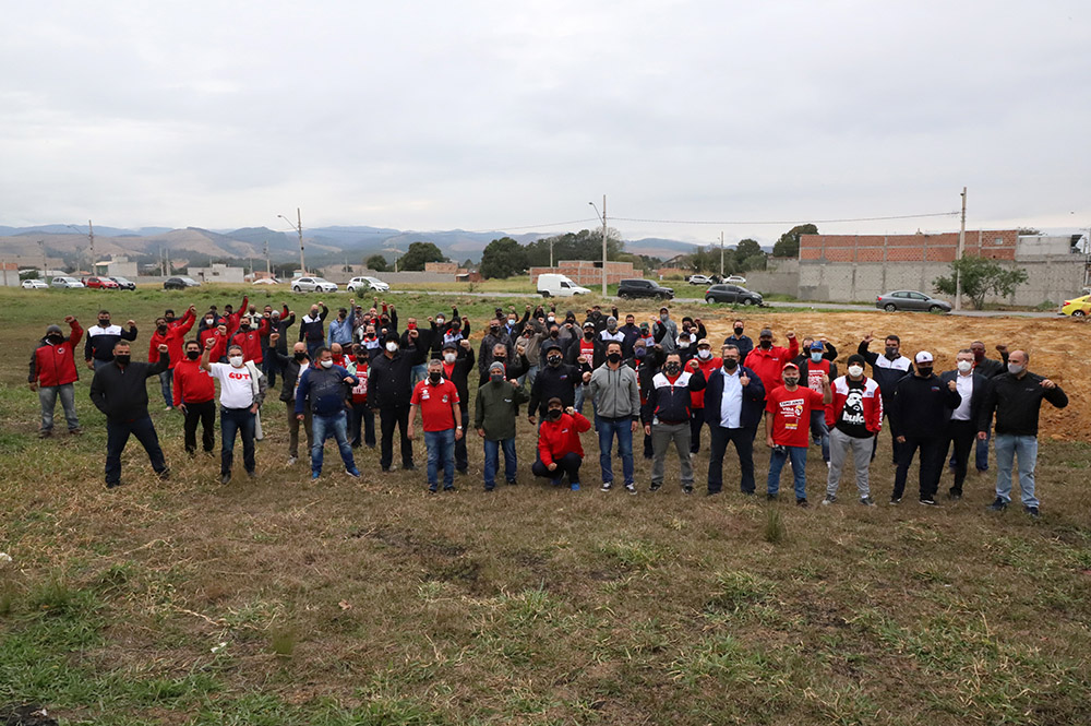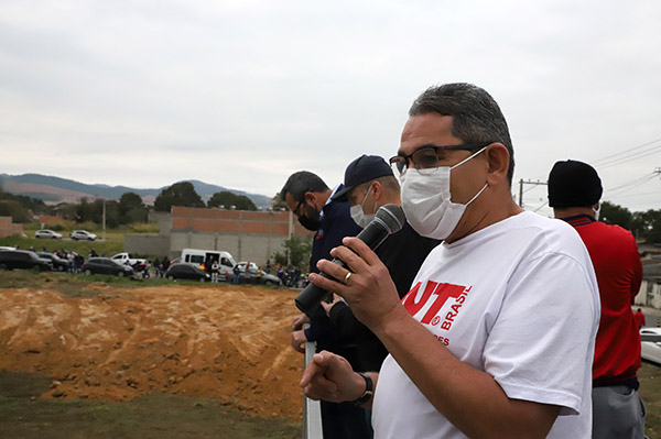 O ato foi realizado em um campo aberto, próximo à fábrica, no distrito do Feital, para atender aos protocolos de saúde da pandemia.