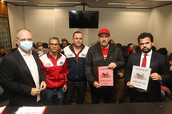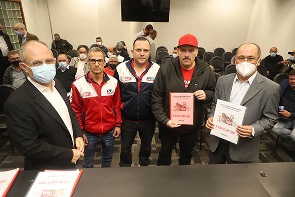 A FEM-CUT/SP (Federação Estadual dos Metalúrgicos da CUT), juntamente com os sindicatos filiados, realizou a entrega da pauta de reivindicações da Campanha Salarial 2022 para as bancadas patronais, na última sexta-feira, dia 3 de junho.