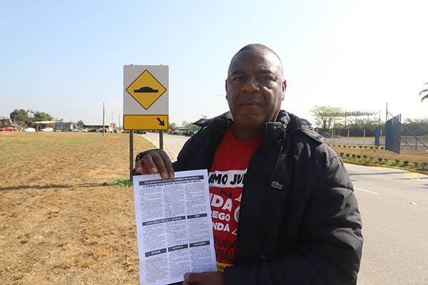 “Teve um dia que o Sindicato avisou o pessoal antes do turno. A chefia decidiu continuar a operação. Acabou estourando um pneu, deslocou o eixo da máquina e tinha trabalhadores em volta, por sorte haviam acabado de sair do local. Mas acabou atingindo uma pá-carregadeira que estava trabalhando próximo e estourou o vidro lateral.”