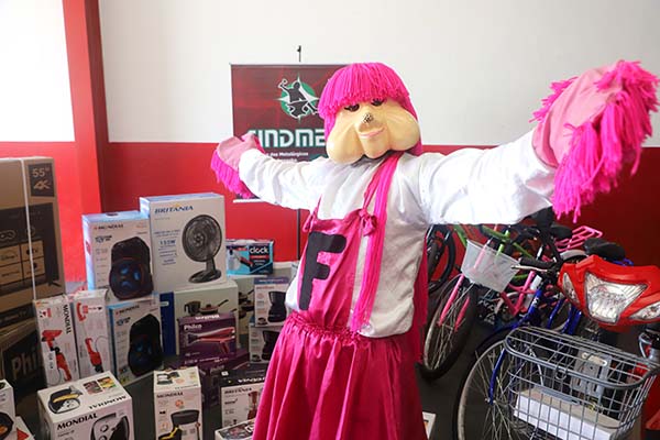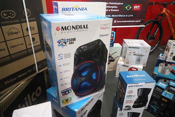 Olha só os prêmios do evento pelo Dia do Trabalhador. Tem TV de 55”, caixa de som, bicicleta elétrica, tem montain bike show, air frayer, panela de arroz elétrica, tem aquela escova que seca e já alisa o cabelo, furadeira e muitos outros. São mais de 50 prêmios.